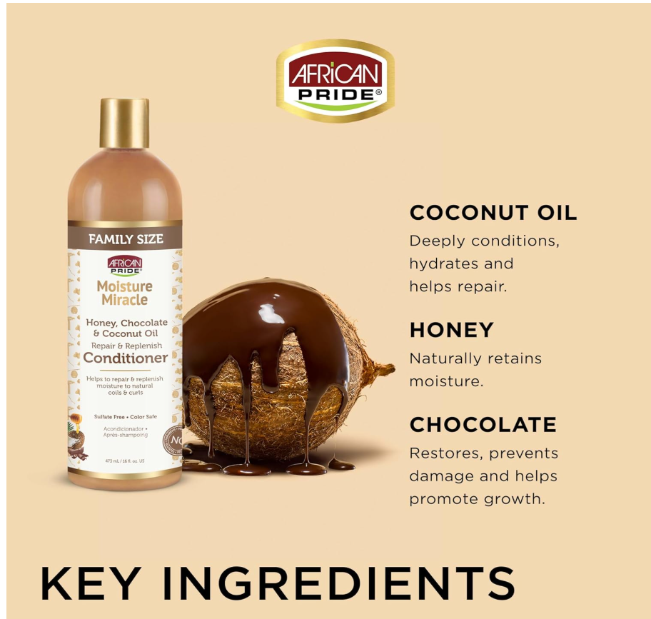 African Pride Moisture Miracle Honey, Chocolate & Coconut Oil Conditioner 16oz
