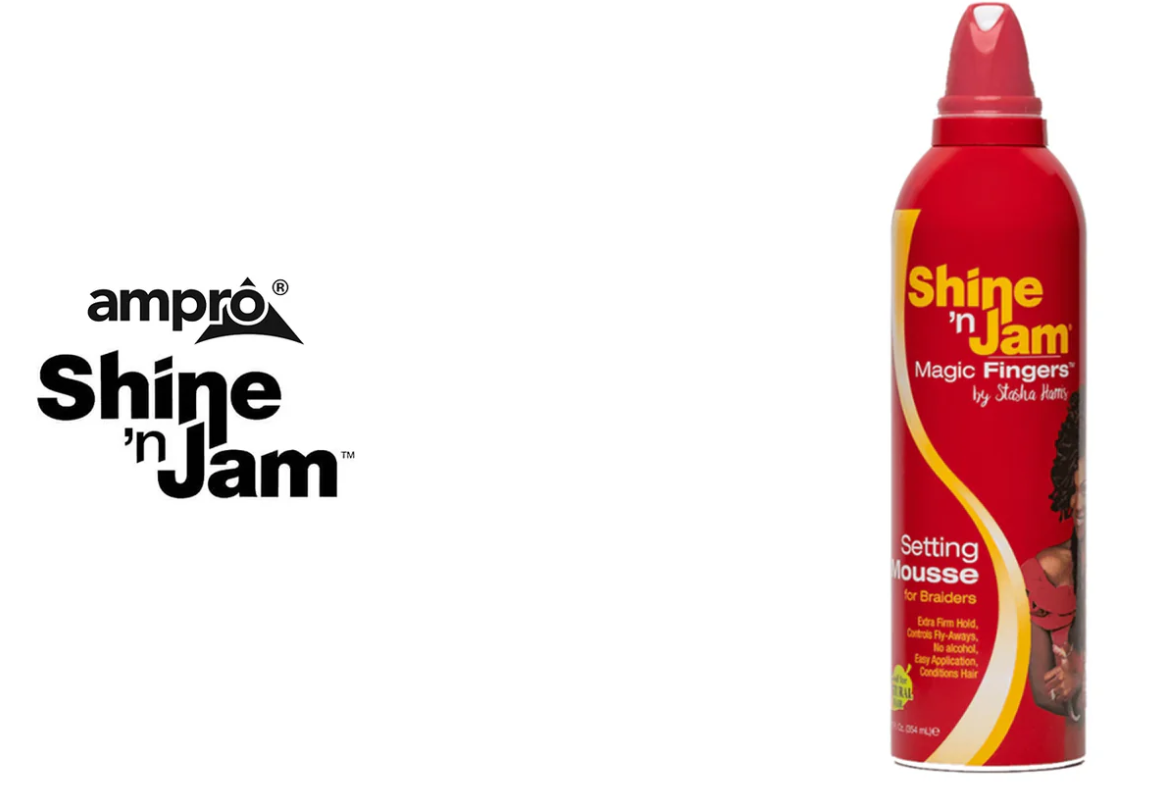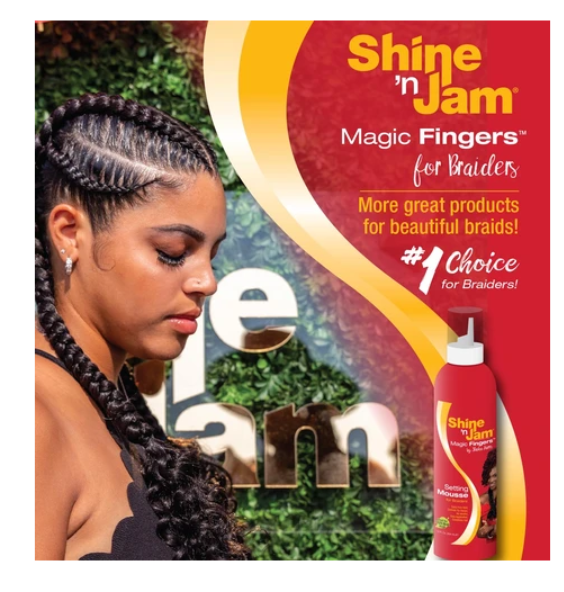Shine ’n Jam® has partnered with an internationally recognized braider, Stasha Harris, owner of Magic Fingers Studio in Brooklyn NY to bring you Shine n Jam® Magic Fingers™ Setting Mousse for Braiders.