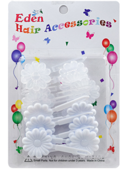 Eden's plastic hinge hair barrettes are designed to hold a young girl's hair in place. The pack features mini flowers to match many outfits.