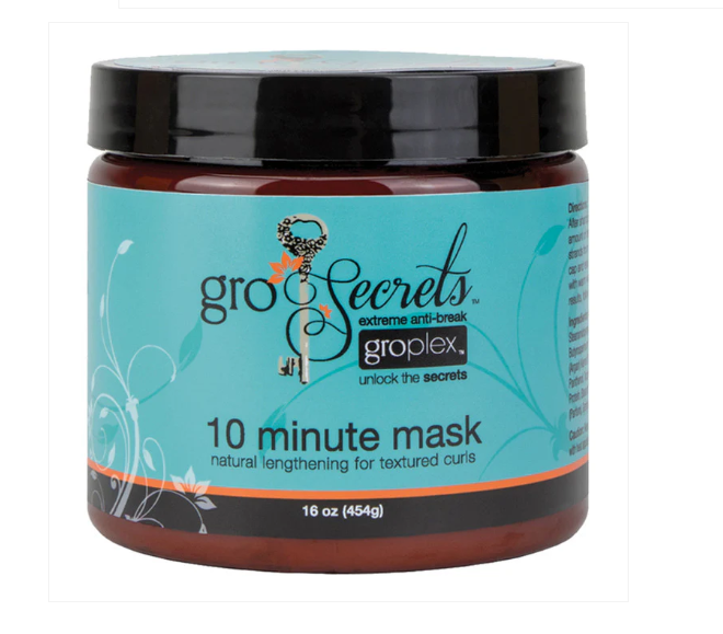 Gro Secrets 10 Minute Mask transforms your natural hair by providing deep conditioning that moisturizes and lengthens your afro-textured curls. Infused with essential moisturizers, Argan Oil, Shea Butter, Olive Oil, Keratin, And Coconut Oil, Gro Secrets 10 Minute Mask revitalizes and strengthens dull, dry hair. Free from Petrolatum, Parabens, Suflates. Color Safe.