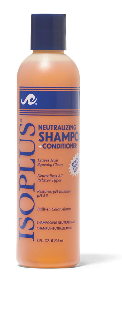 - Isoplus Neutralizing Shampoo contains rich concentrated ingredients that remove excess alkali and caustic residue after hair has been relaxed.