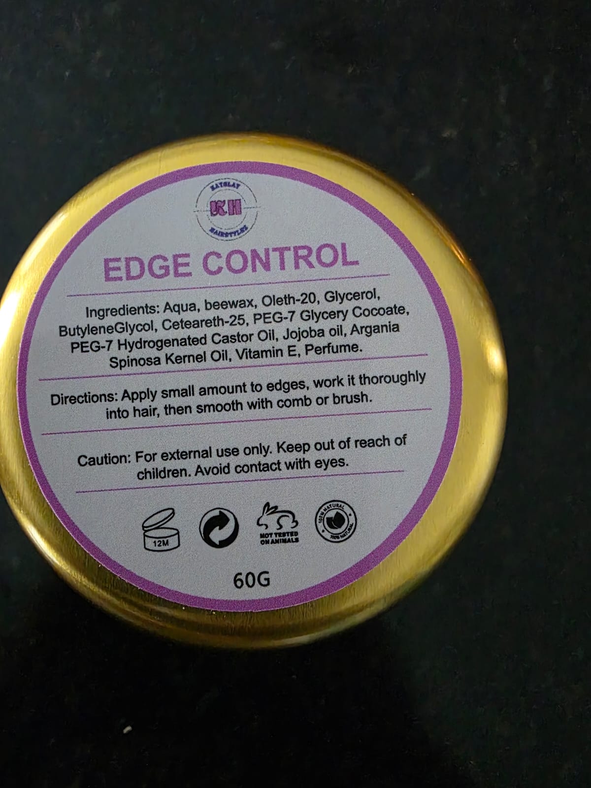 60g edge control. Perfect for sleek edges. 24hours hold for all hair types.
